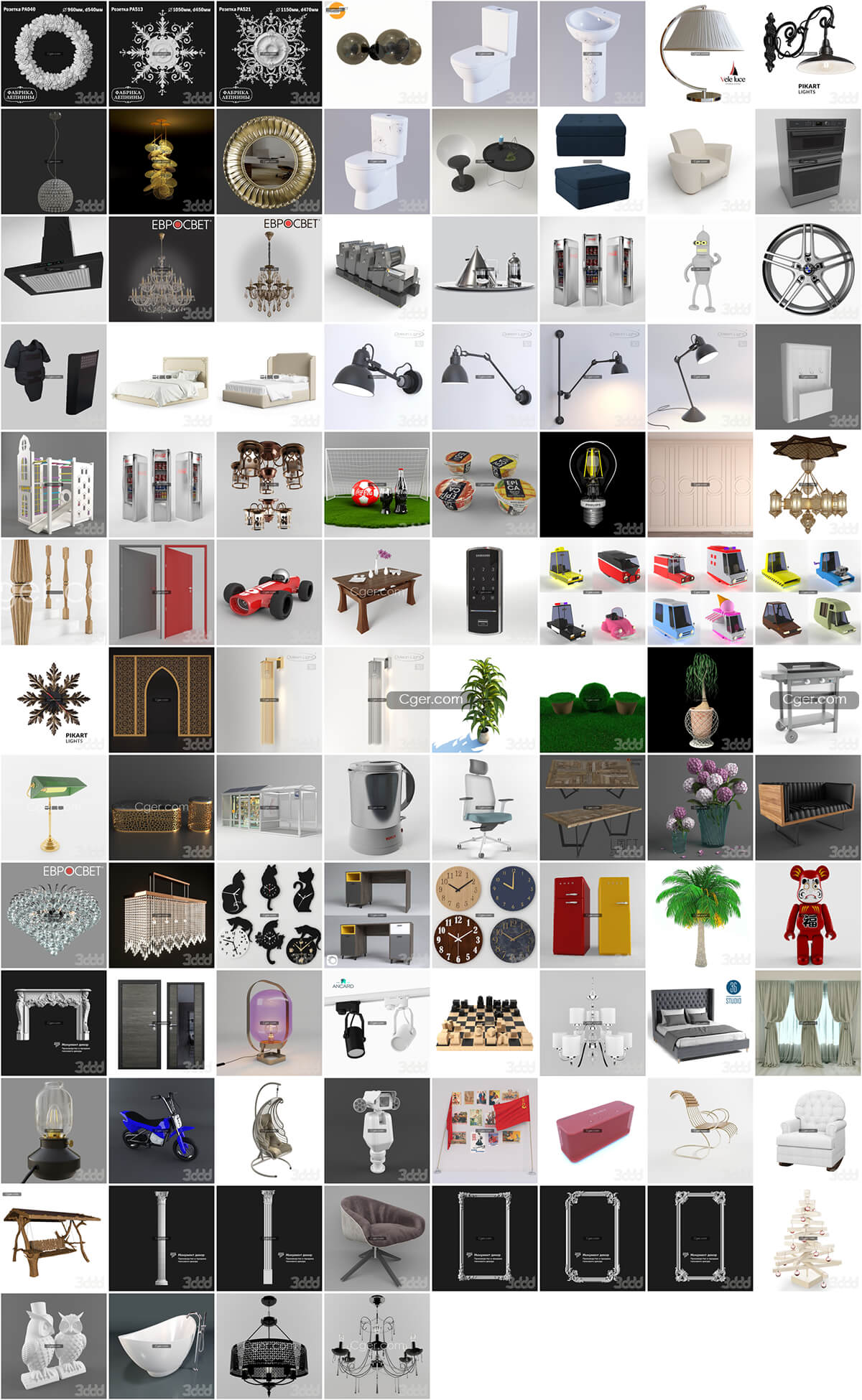 3dsky网站的100个free级别的模型合集,包括:欧式石膏雕花,壁灯,马桶,洗手池,台灯,吊灯,镜子,桌子和椅子,沙发,烤箱,抽油烟机,大型打印机印刷机,酒壶酒杯,自动贩卖机,轮毂,防爆服,防爆盾牌,床,儿童攀爬玩具,可口可乐,电灯泡,速食食品,门,玩具汽车,门禁键盘,卡通车辆,阿拉伯风格建筑构件,植物盆栽,候车亭,开水壶,办公椅,花瓶,猫咪挂钟,复古冰箱,玩具人偶,轨道射灯,国际象棋,床,窗帘,摩托车,吊椅,摄像头,红色宣传画,摇椅,秋千椅,欧式石膏柱子,木头圣诞树,猫头鹰石膏雕塑,浴缸等模型。