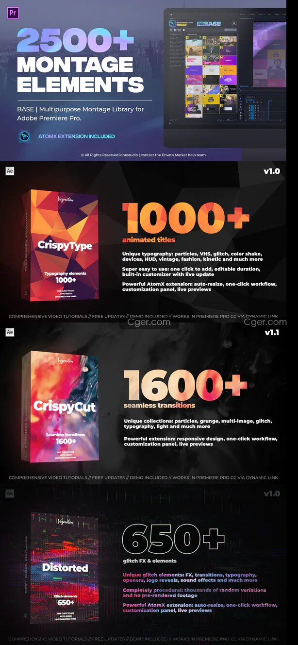 用于Premiere Pro和After Effects的图形包与AtomX扩展包。18个系列,24.8GB。