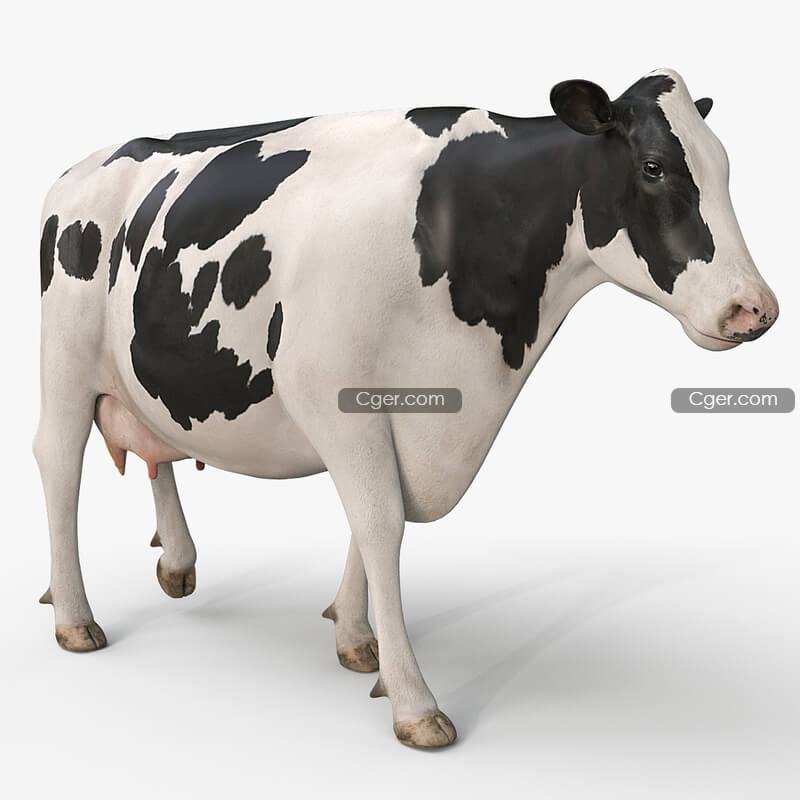 Turbosquid - 荷斯坦奶牛3d模型,max,fbx abc格式,已绑定骨骼