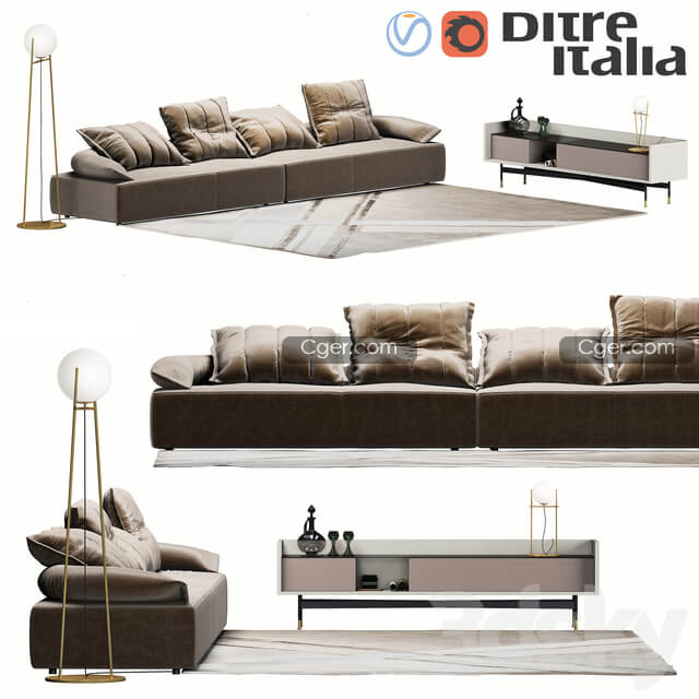 Ditre Italia Flick-Flack sofa 2017 (with Tondina floor and table lamp, and with Dialogo cabinet in the scene) V-Ray, Corona render Formats in the archive: .MAX2011 .OBJ polys: 536820 verts: 321497 Its unmistakable design is the brainchild Of Anna von Schewen, a Swedish designer who pays a great deal of attention to the work of the art of workmanship of her creations, yet is a scandinavian tradition based on clean lines, enhanced by care to detail. Cushions are placed over cushions on top of a bench. The edging details add a visual perception to the usual tactile experience. The noiseless mechanism can raise all the cushions for the total body relaxation while the unsymmetrical modules confirm the contemporary style of this room.