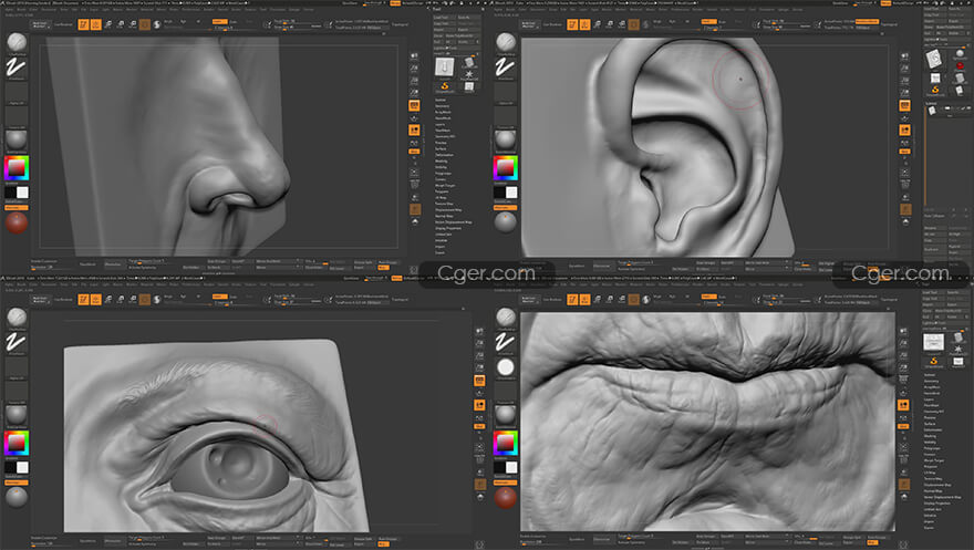 FlippedNormals - 在Zbrush中雕刻面部特征教程 - 鼻子,耳朵,眼睛,嘴