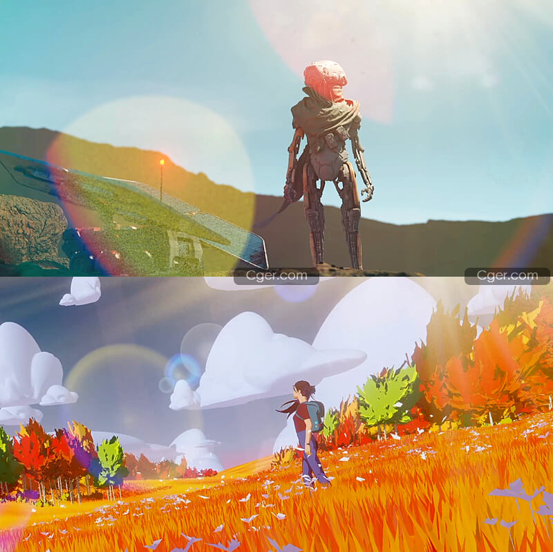 您可以直接预览最终结果,而无需使用合成器。它不是基于屏幕空间的,所以当光源移出屏幕时它也能工作。它利用了程序材质,并且与分辨率无关。它易于使用和定制,可以帮助您为3D场景添加电影般的效果,或为真实视频片段增添更多戏剧性。它不是通过镜头的光路的物理模拟,它是一个强大的艺术工具。