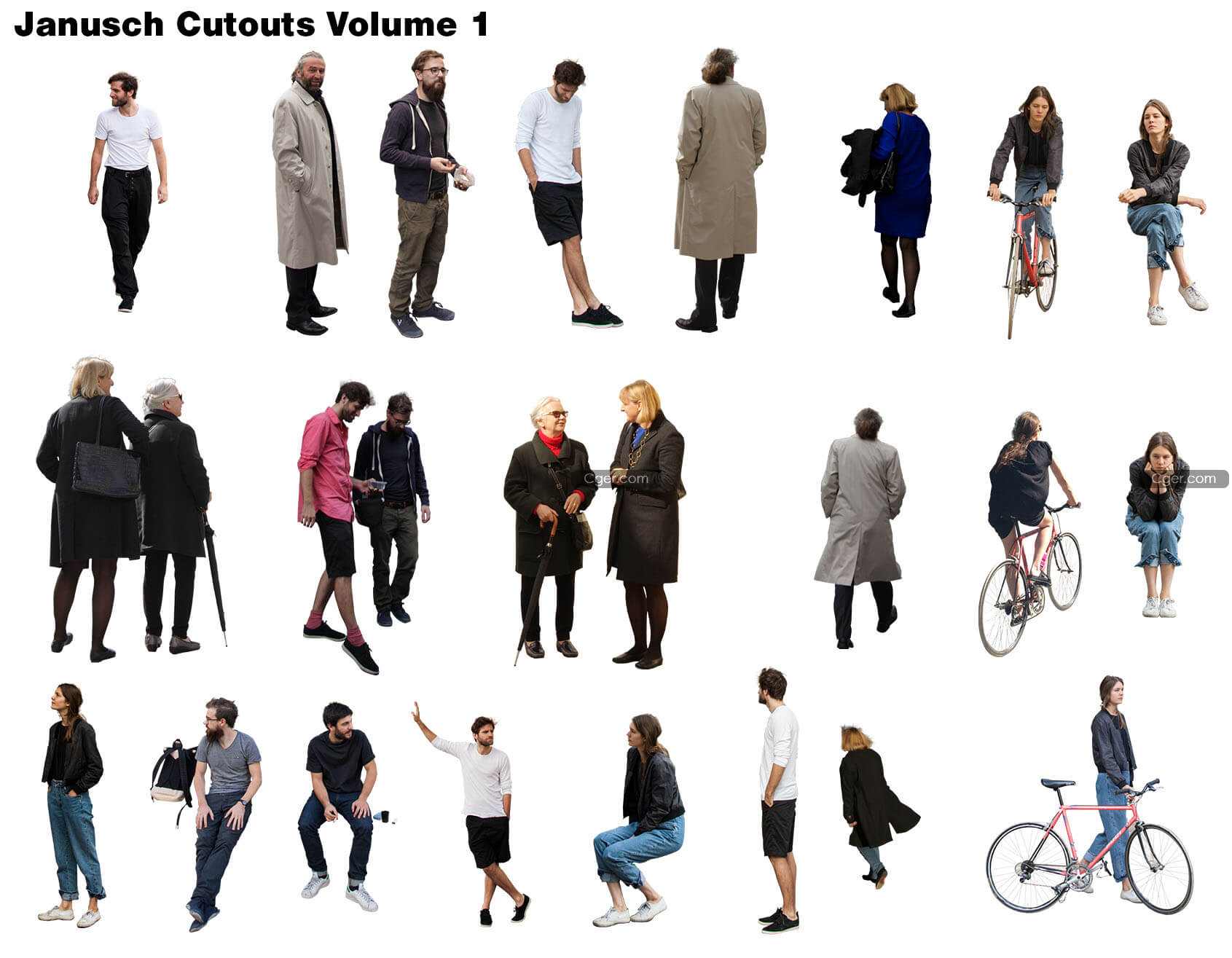 Janusch - 抠好的后期休闲人物素材21个,骑自行车的女人,坐着的男人,坐着的女人,步行人,老人,穿着风衣的人等。
