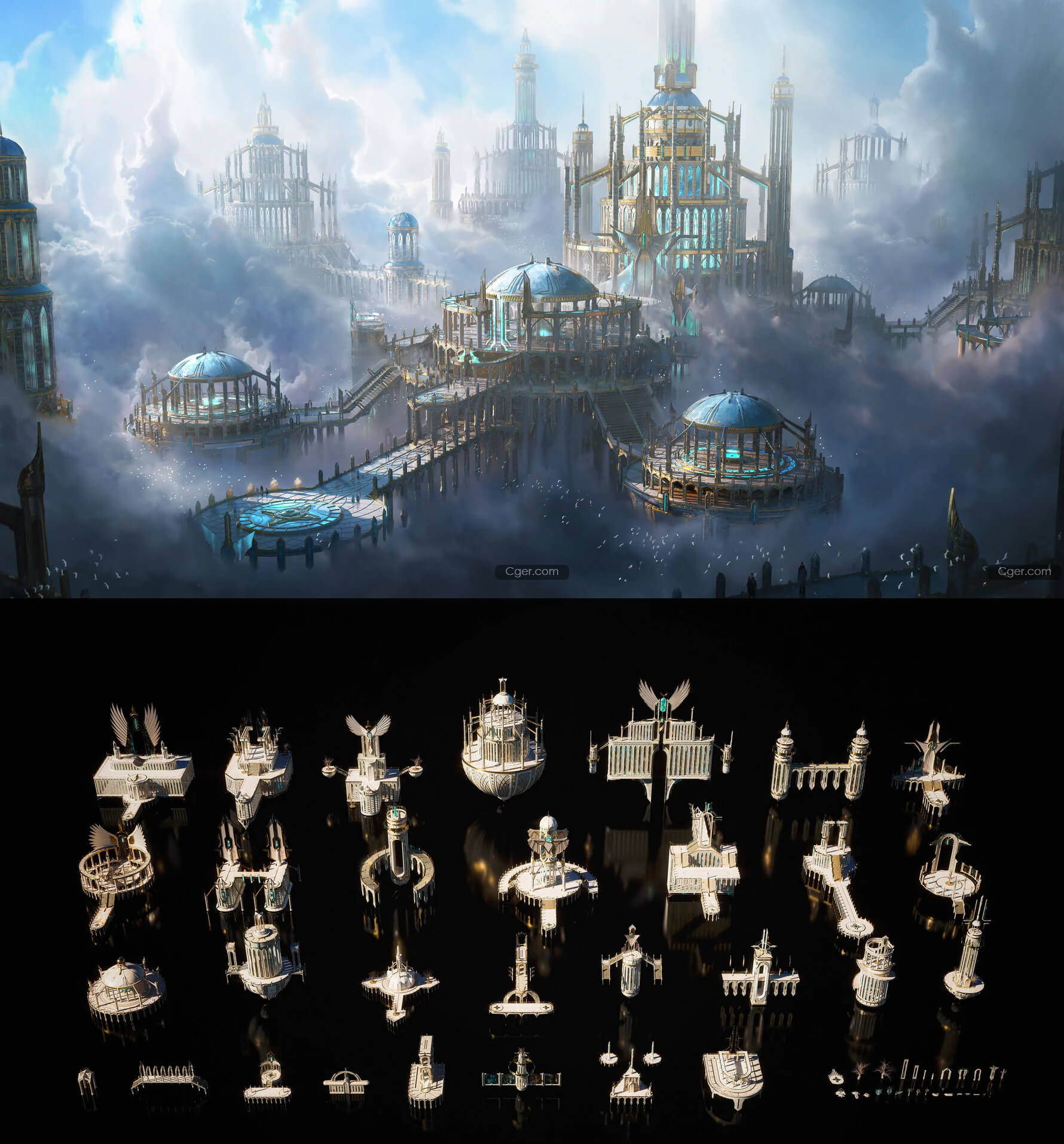 探索由精灵组成的上流社会的皇家城市,这里有美丽的华丽图案、天使雕塑、黄金和大理石饰面、翡翠宝石和令人惊叹的建筑,你可以使用这些3D模型来建造嵌入山腰的神秘城堡,或是空中的城堡,以及由魔法驱动的悬浮庭院。