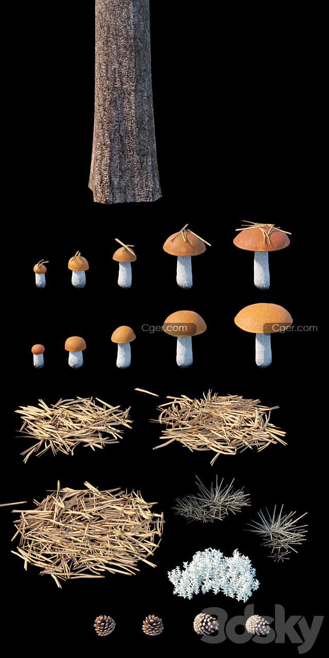 needles, cone, forest, pine, mushroom, moss, grass, greenery, vegetation, glade, red-headed, boletus