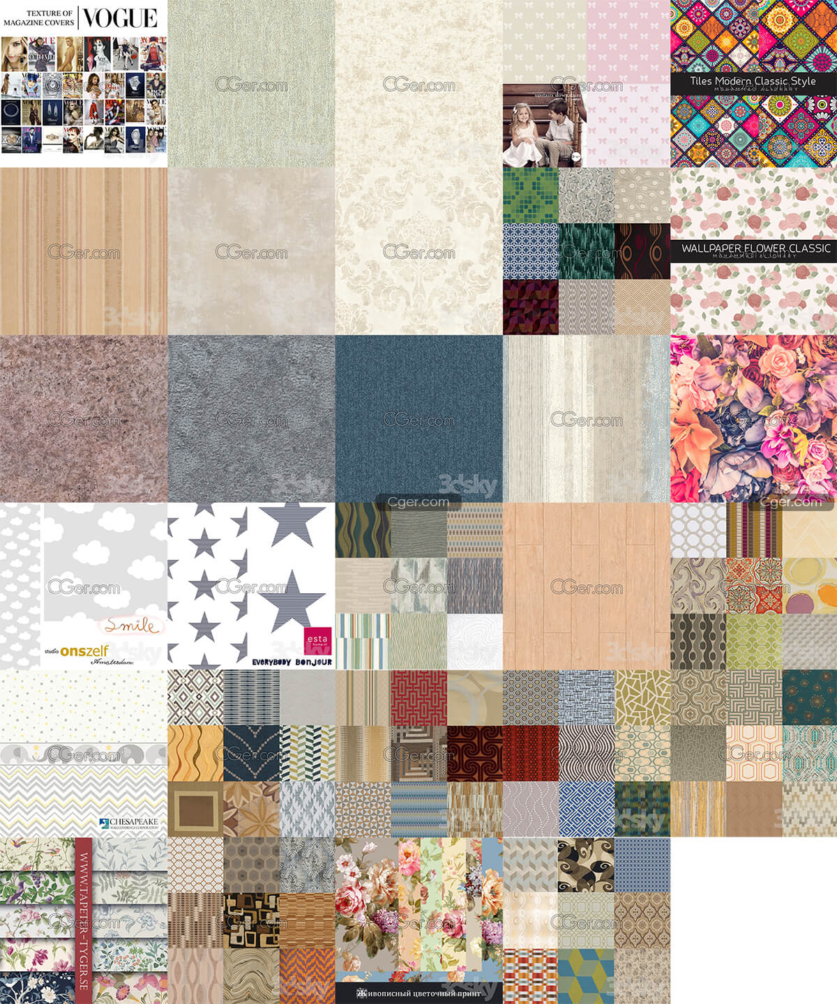 3dsky free 贴图纹理 P2,28套3dsky网站材质贴图素材。杂志封面,墙纸,地毯,布料,木地板,石材等。