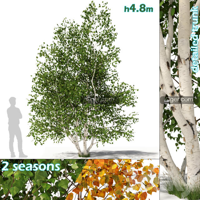 Uses unique high resolution textures. The archive contains a second variation of birch, all in the collection are 3 variations of different sizes and densities of the crown.