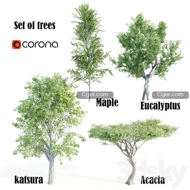 相思树、桉树、枫树、南五味子等4棵树模型合集。