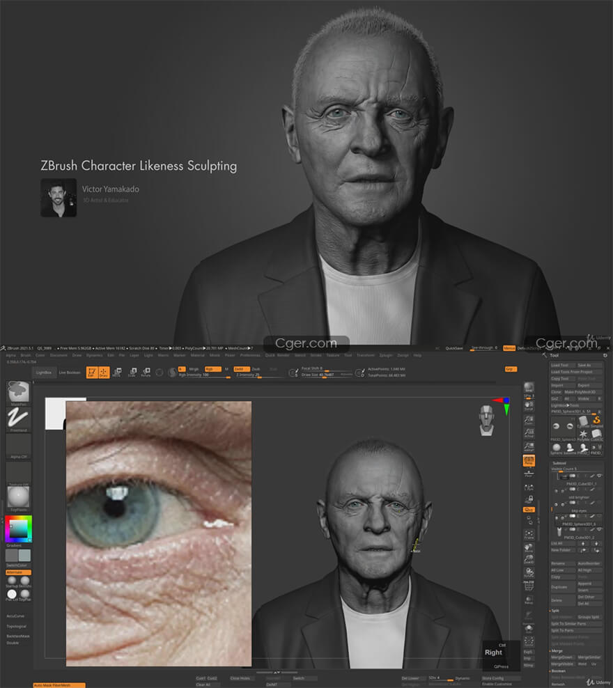 Udemy - Zbrush 2021人物肖像雕刻建模教程,23.9GB。