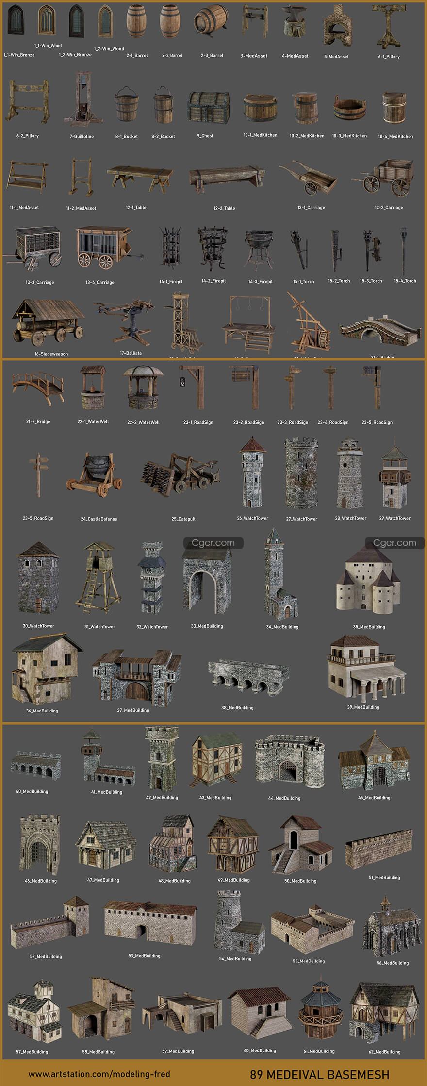 ArtStation - BaseMesh 89 MEDIEVAL Assets + Texture Vol.1 - 3dmodel