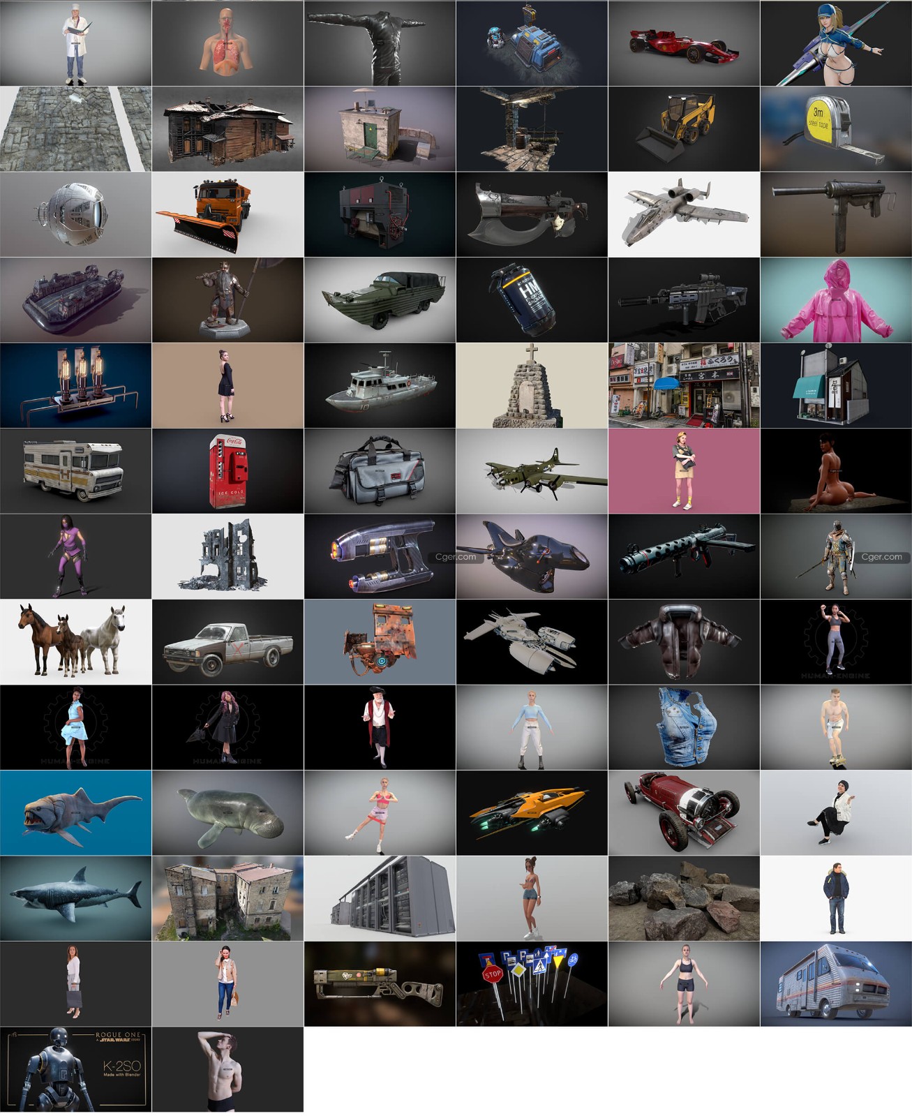 168个PBR游戏3d模型包,2022年9月合集,max fbx obj格式。包括:雕塑,人物,盔甲,电子产品,机器人,男人,女人,建筑,车辆,枪支,武器,科幻飞船,鞋子,建筑,缝纫机,原子弹,战斗机,衣服服装,游戏角色,车辆,船只,动物,道路设施等。