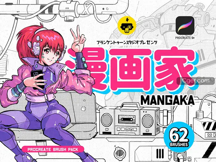 Mangaka是专为Procreate 5制作的多合一墨水和绘画套件。它将帮助您使用由现实生活中的工具制作的工作室品质画笔组合来创建黑白漫画页面和彩色封面插画。如果您是漫画家或漫画家,这一系列标记、墨迹工具、画笔和图案也将成为您的首选工具。