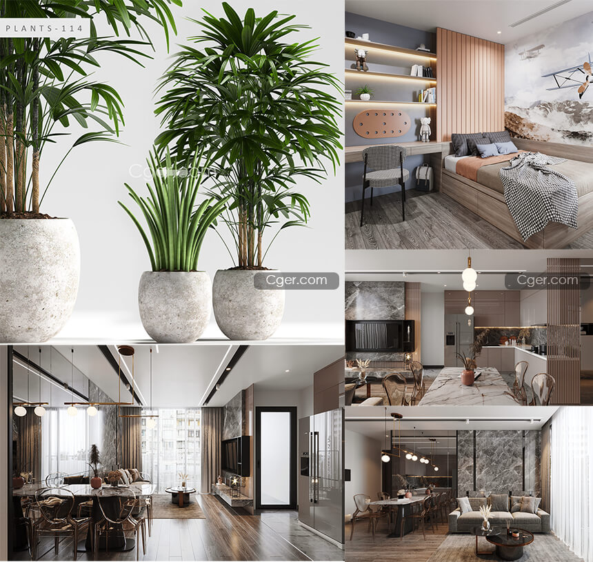 一组植物盆栽模型+一套室内场景模型,max格式。