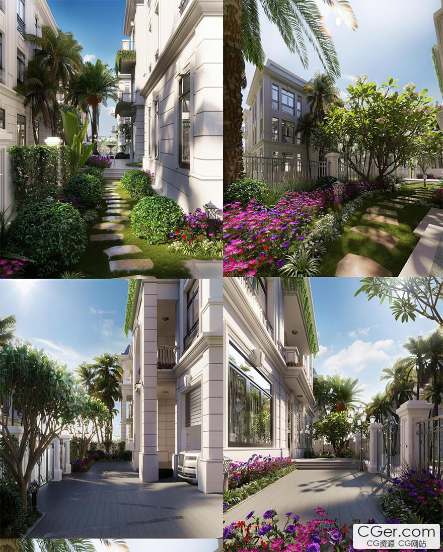 花园别墅室外场景模型,max格式,作者:Louis Nguyen