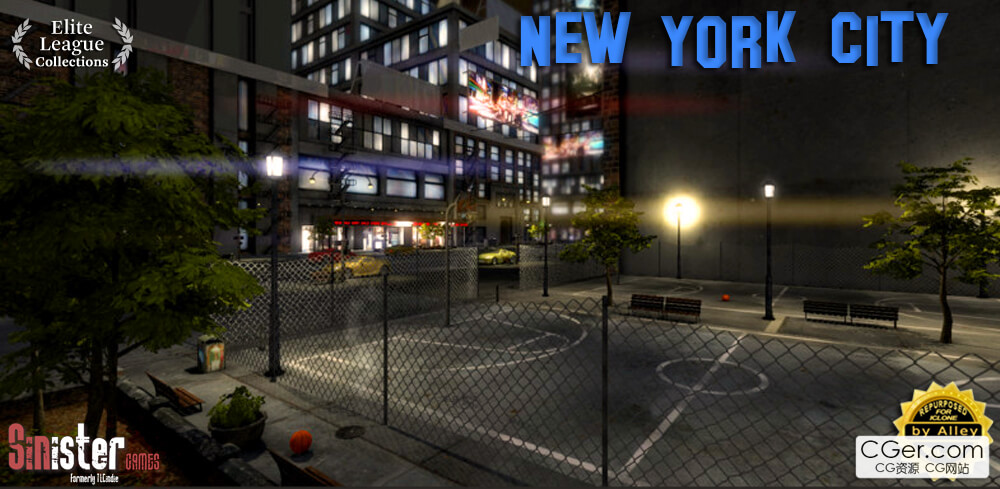 篮球场和篮球是场景道具的一部分,也包括作为单曲,还有一些滑板溜冰场。几个建筑物的面,标志和路灯都有发光图,以增强夜间外观。这些强度可以通过不透明度滑块进行调整。