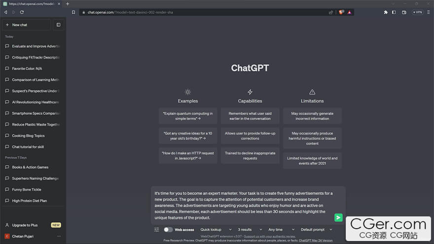 标签: ai 人工智能 ChatGPT 教程 学习 提示 Prompt○ 因利息系统长期被人利用漏洞刷取CG点,目前取消利息功能,作为补偿,每个已存在账号额外一次性补偿当前余额的 30% ,后续充值赠送百分比提高 100% (10元+6%,20元+10%,50元+16%,100元+20%,200元+30%,暂定),请知悉。 ○ 充值或账号问题请【点击这里联系站长】 |