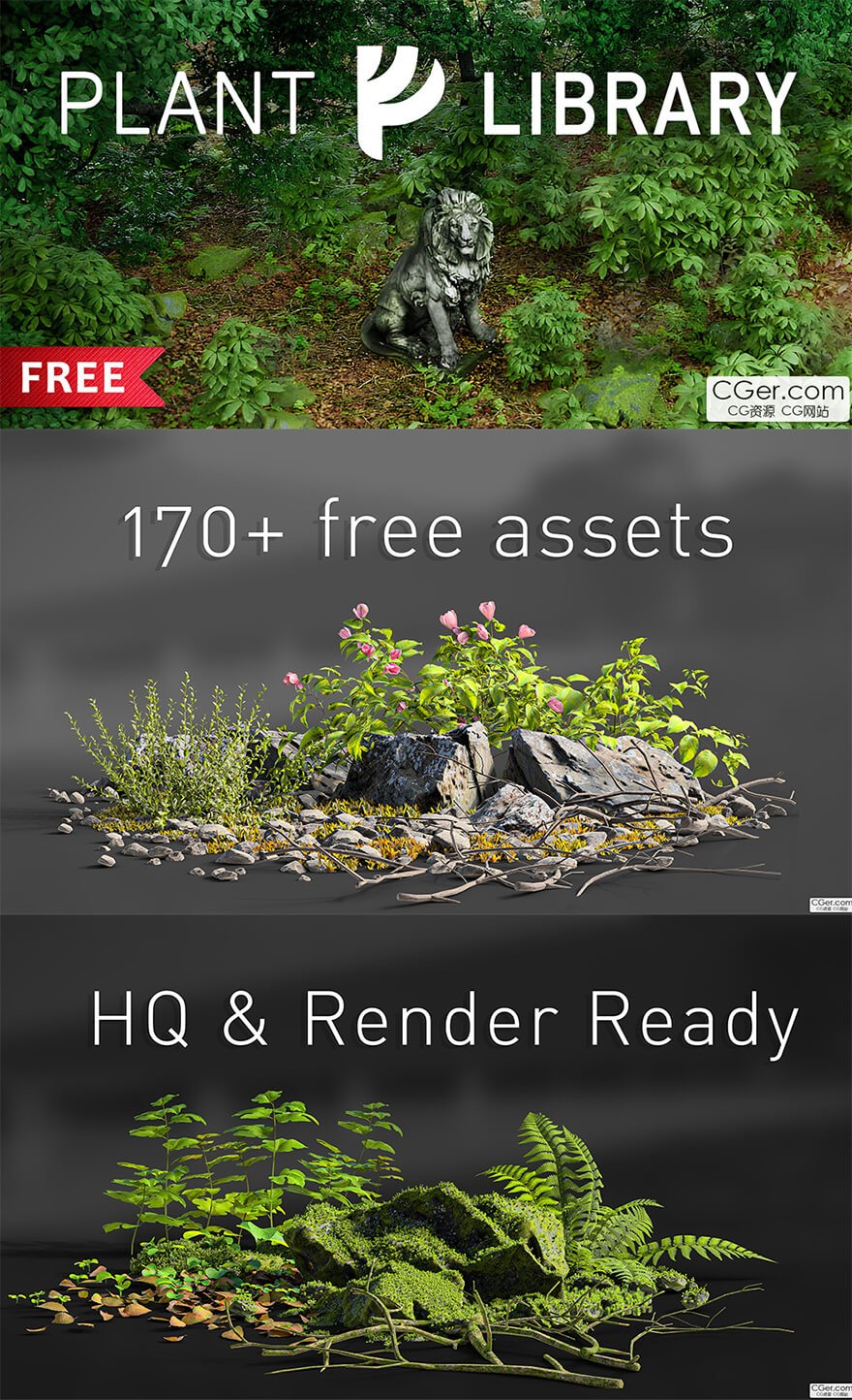 Blender的免费植物库,这是一个包含超过 170+ 总植被资产的模型包。