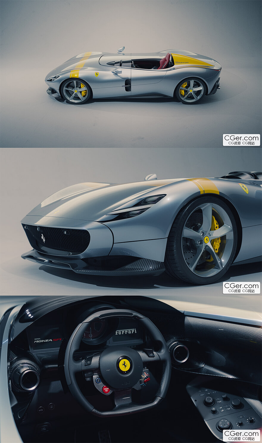 法拉利蒙扎跑车3D模型,包括纹理和内饰。
