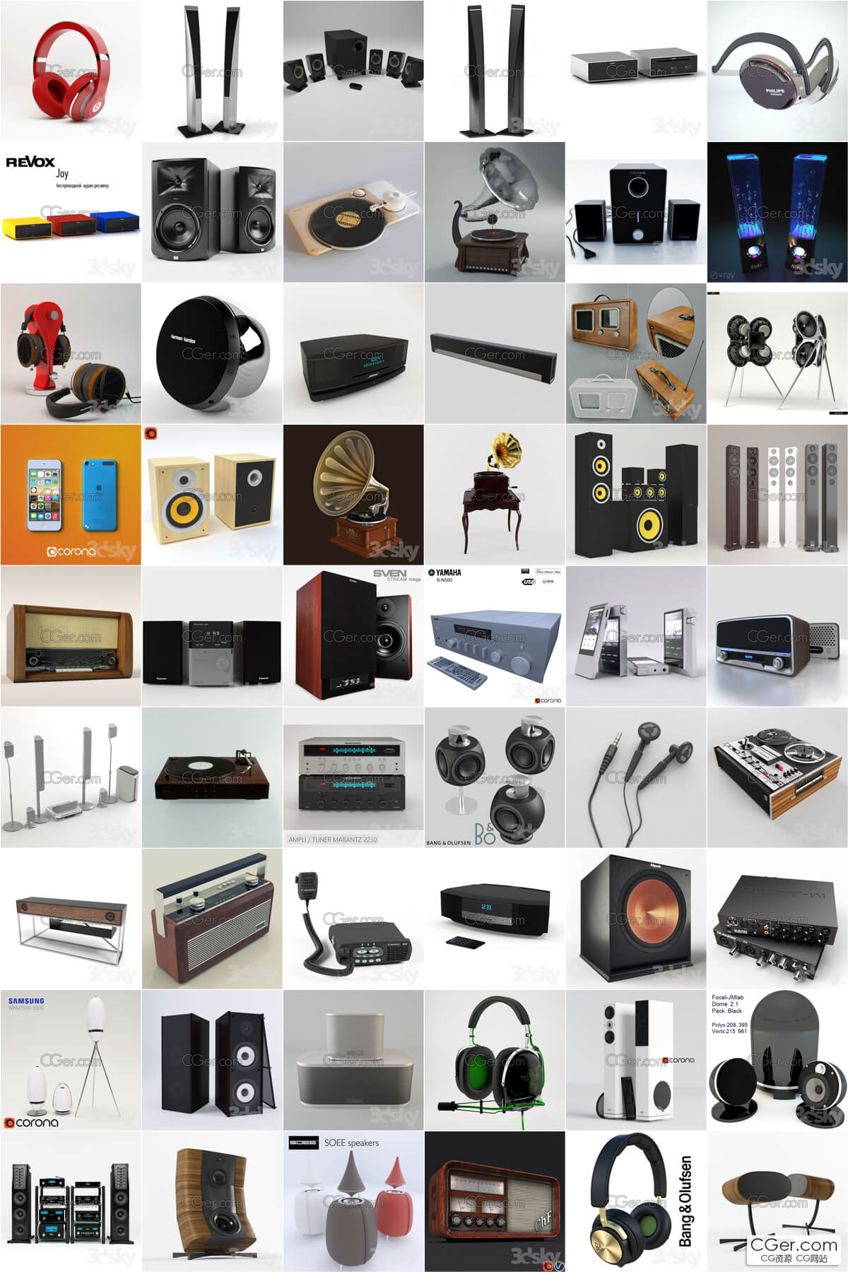 59套3dsky网站的免费 Technology Audio tech 音响设备模型合集,耳机,音响,工坊,唱片机,留声机,MP3,耳机等模型。