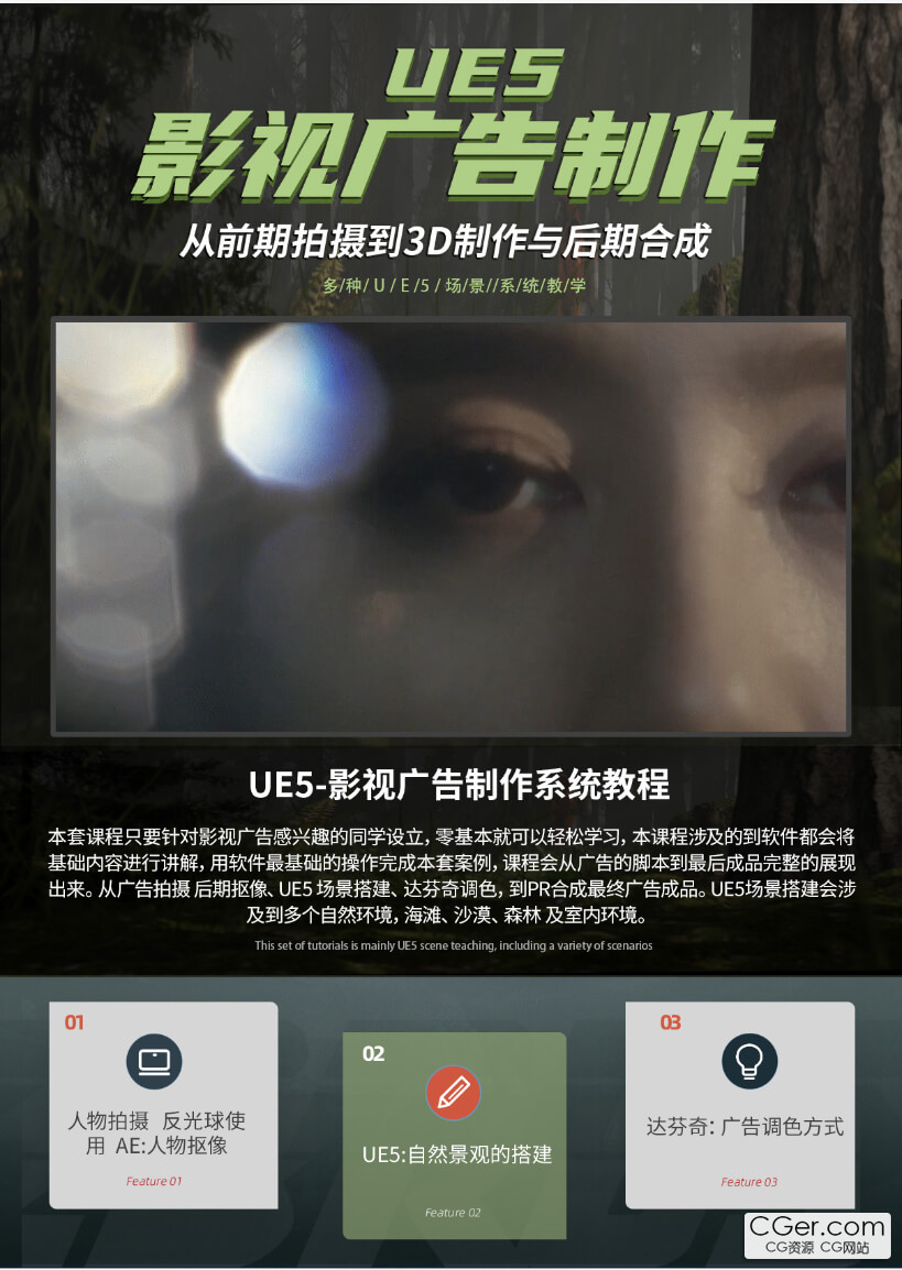 本套课程只要针对影视广告感兴趣的同学设立,零基本就可以轻松学习,本课程涉及的到软件都会将基础内容进行讲解,用软件最基础的操作完成本套案例,课程会从广告的脚本到最后成品完整的展现出来。从广告拍摄后期抠像、UE5场景搭建、达芬奇调色,到PR合成最终广告成品。UE5场景搭建会涉及到多个自然环境,海滩、沙漠、森林 及室内环境。
