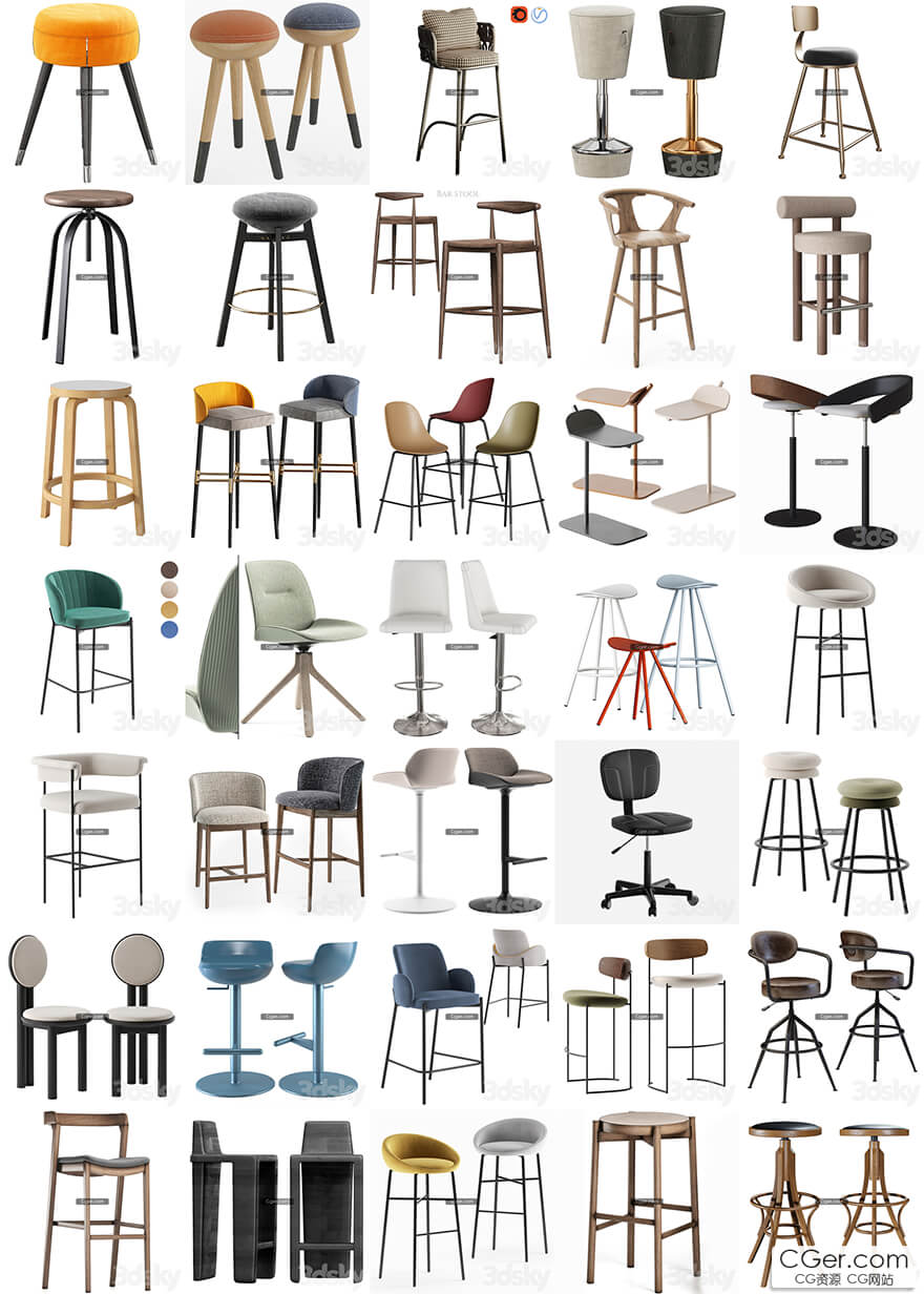 35个3dsky网站的酒吧凳高脚凳模型合集。
