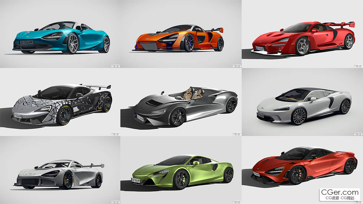 9辆2019年-2022年产的迈凯伦汽车模型合集,fbx格式。