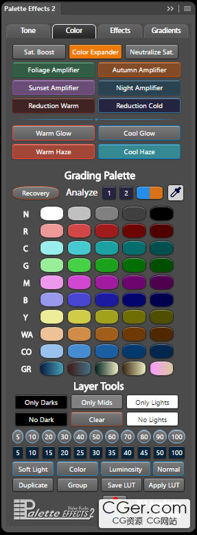 使用“Palette Effects Panel 调色板效果”,您不会跳入一个为您带来按钮式满足感的 Photoshop 扩展。 通过Palette Effects Panel,您正在使用一个非破坏性的、依赖工作流程的系统,该系统受到伟大画家的色彩理论原则的支持。 教育+小组将加速您的后期制作知识,曾经令人窒息的“色彩理论”将成为您的第二天性!