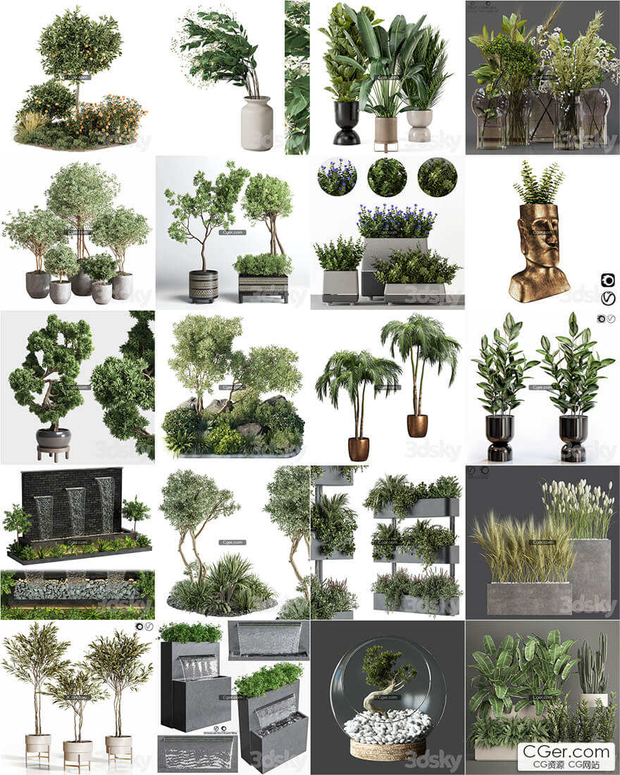 41组3dsky网站的植物盆栽模型合集。小树,花瓶,盆栽,水景,瀑布,藤蔓,游泳池等模型。