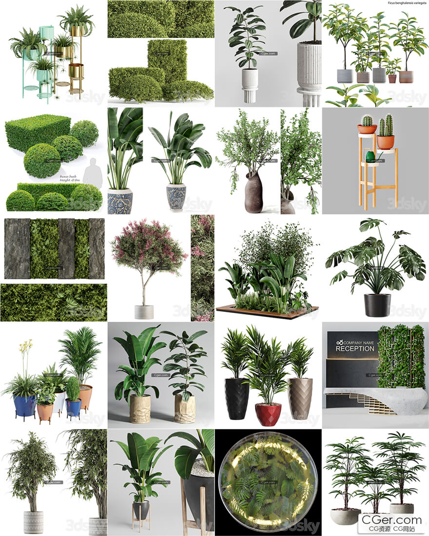 50套3dsky网站的盆栽植物模型合集。
