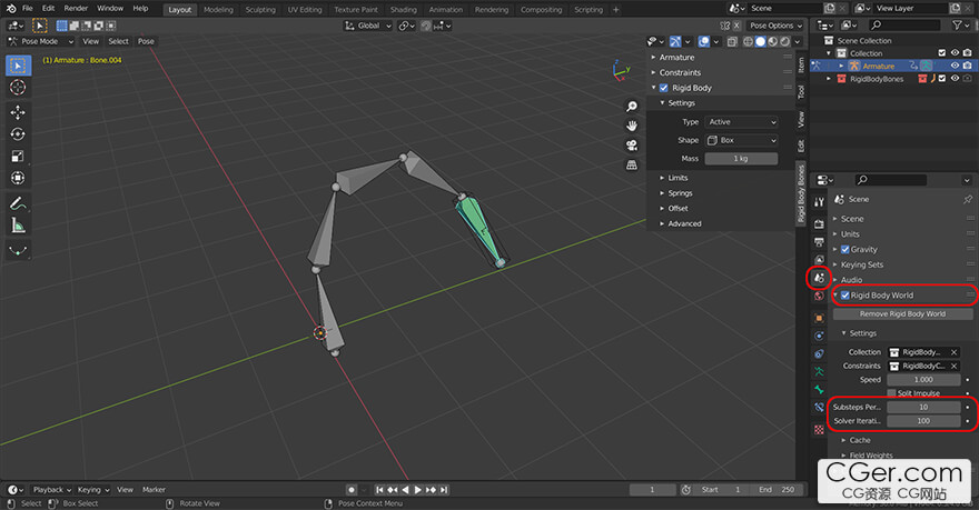 Rigid Body Bones 是一个 Blender 附加组件,旨在自动化在 Blender 中设置骨骼物理过程。 它简化了将立方体与骨骼对齐、设置约束和调整各种设置所涉及的繁琐且耗时的任务。