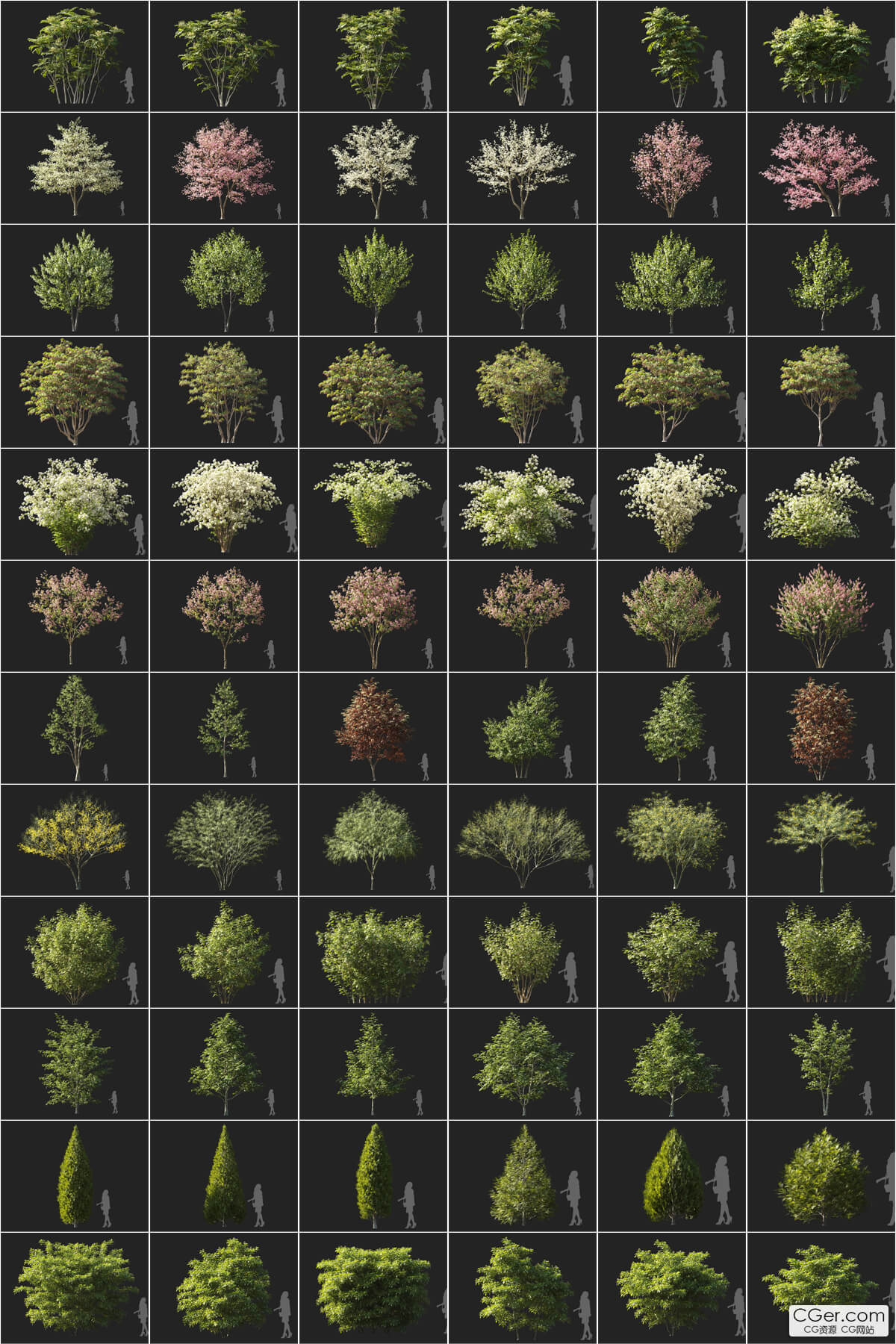 Maxtree 植物模型第122期,包括12种植物类型,共72个变种模型,max fbx growfx格式。