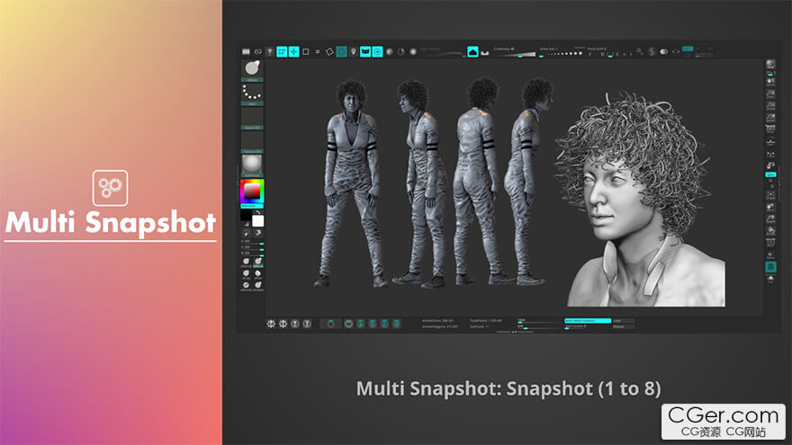 此ZBrush插件可一次更新从专用快照按钮记录的多个快照。每个快照均可使用以下独特设置进行配置。