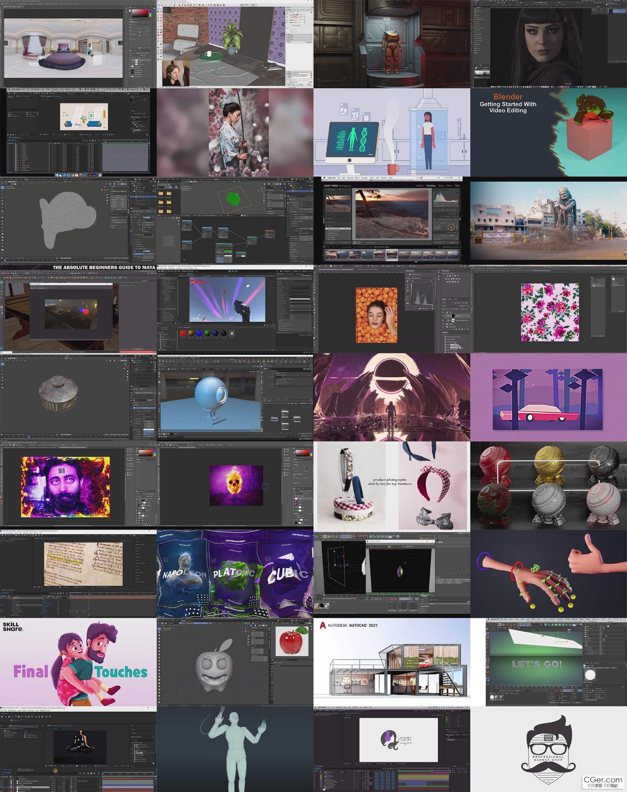 Skillshare网站的36套教程合集,涉及软件:After Effects,3DS Max,Animate,Autocad,Blender,插画手绘,Cinema4D,Photoshop,摄影摄像,Nuke,Affinity Photo,Houdini,Unity,Lightroom,Substance Painter,Maya,Sketchup 等。68.5GB。
