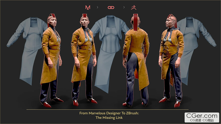 我们将从 Marvelous Designer (v9) 开始,然后重点介绍经常被忽视的关键阶段:创建一个干净的、重新拓扑的网格,连接 Marvelous Designer 和 ZBrush。此步骤对于实现最终雕刻的精确性和灵活性至关重要。