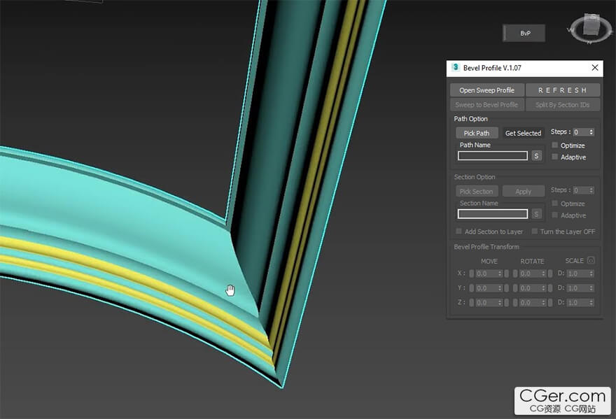 - If the Script is open you can Control the Diminsion of the Scetion from Scale Spinners , But if you reopen the Script it'll Lose the Section so the scale Spinners will control the Scale not the diminsions , unless you Typed the Section name in Section name Field (You can get the name of the section from Bevel profile Parameters) .