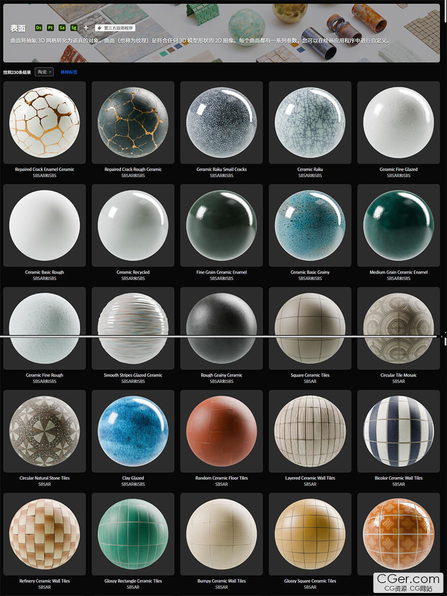 Substance 材质 - 200+ 种陶瓷,瓷砖,墙砖,地砖,石材材质,.sbsar格式。