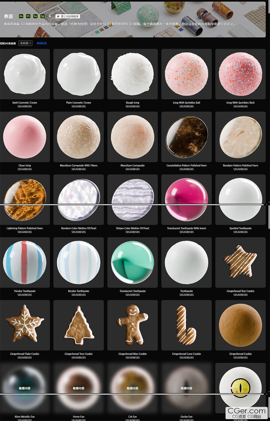 Substance 材料 - 300+ 种有机物材质,.sbsar格式。