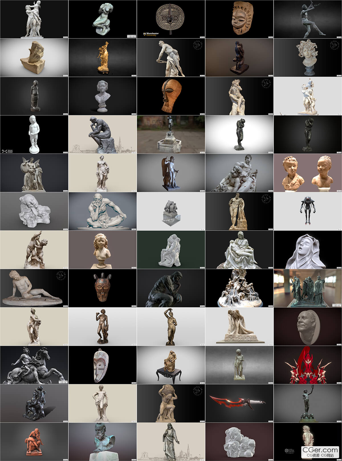 Sketchfab网站的105个游戏级别的雕塑雕像模型合集,2025年5月1日整理,10.9 GB。