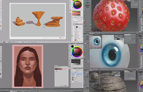 Paintable - 数字绘画学院-额外教程,石头,草莓,头发,眼球,木材,毛发,草的绘画教程。